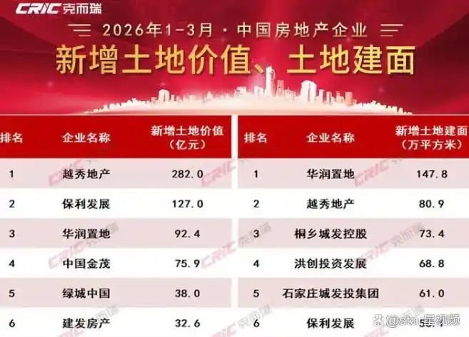 2026年一季度,全国房地产土地市场整体保持审慎投资态势,优质地块高度集中于核心城市,房企投资策略更趋理性与精准。根据克而瑞发布的《2026年1-3月中国房地产企业投资拿地分析报告》显示,一季度土地市场呈现“局部回暖、整体稳健”的运行格局,优质国企凭借稳健财务底盘与前瞻布局能力,在土拍市场中持续占据主导地位。建发房产凭借清晰的投资战略、稳健的经营底气以及对核心城市的深度研判,在一季度拿地榜单中表现亮眼,多项指标稳居行业前列,充分展现出强劲的投资实力与高质量发展潜力。